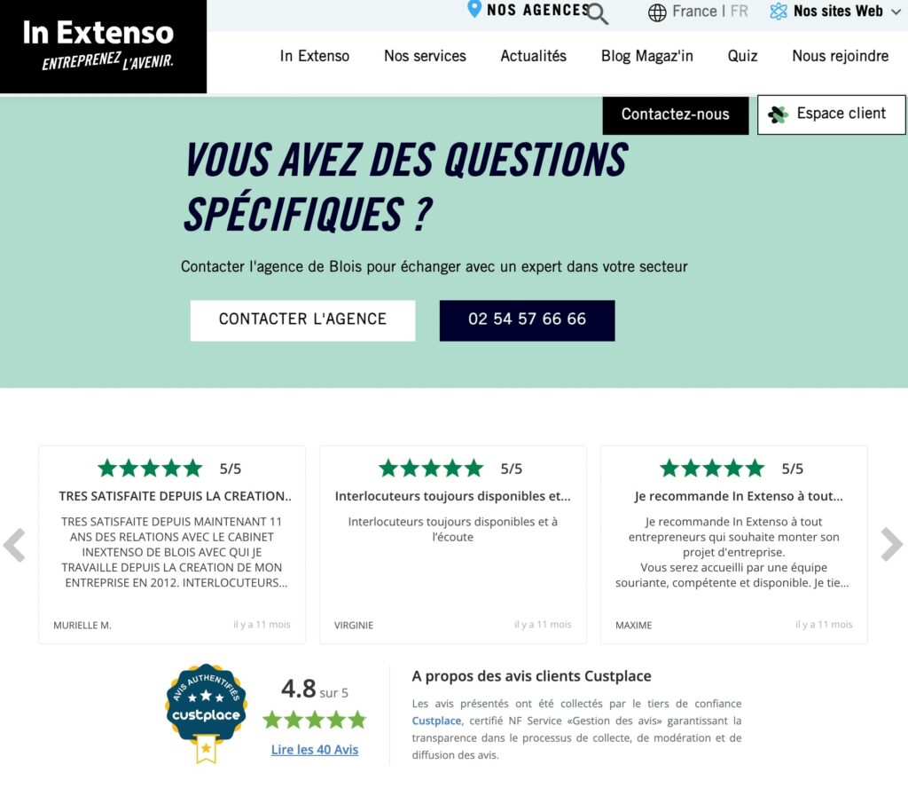 • 💬 Intégration des avis authentiques sur le site inextenso.fr et sur chaque page agence (Store Locator)