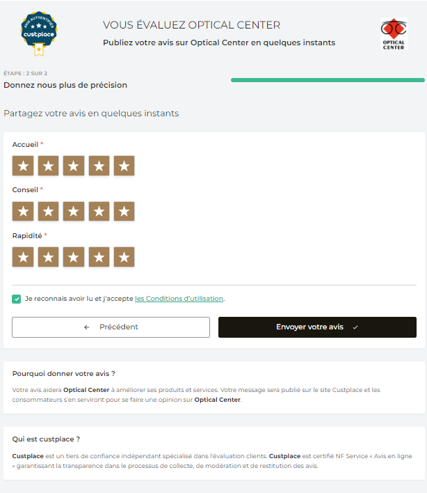 Le réseau d’opticiens Optical Center (700 magasins dans 7 pays) recueille les retours de ses clients sur place de manière novatrice. Au sein de leurs boutiques, ils offrent à leur clientèle la possibilité de scanner leur code QR afin de partager leurs expériences en tant que clients.