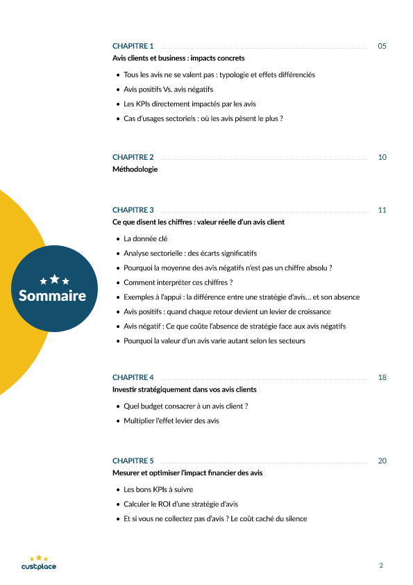 Pendant longtemps, on a parlé de réputation Aujourd’hui, on parle de rentabilité. Cet ebook dévoile combien un avis client peut réellement rapporter – ou coûter – à votre entreprise, selon votre secteur.