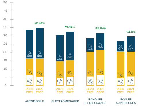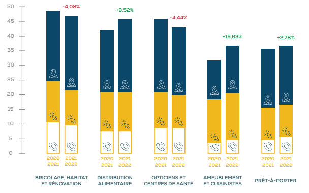 Les secteurs d’activité surveillés ont été analysés selon les performances enregistrées par les magasins des grands réseaux par rapport à ces 3 indicateurs : les appels, les visites du site web et les demandes d’itinéraire.