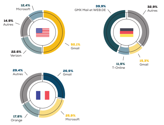 Parts de marchés de différents services de messagerie :