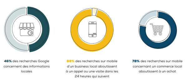 Les chiffres communiqués ces dernières années par Google indiquent clairement une tendance : un peu moins de la moitié des recherches auraient une dimension locale, et la majorité porterait sur des commerces de proximité.