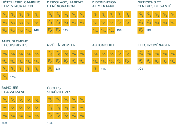 L’étude Custplace se concentre donc sur les 11 secteurs dont la plateforme a recueilli le maximum de données et qui sont représentatifs des corps de métiers les plus fréquents.