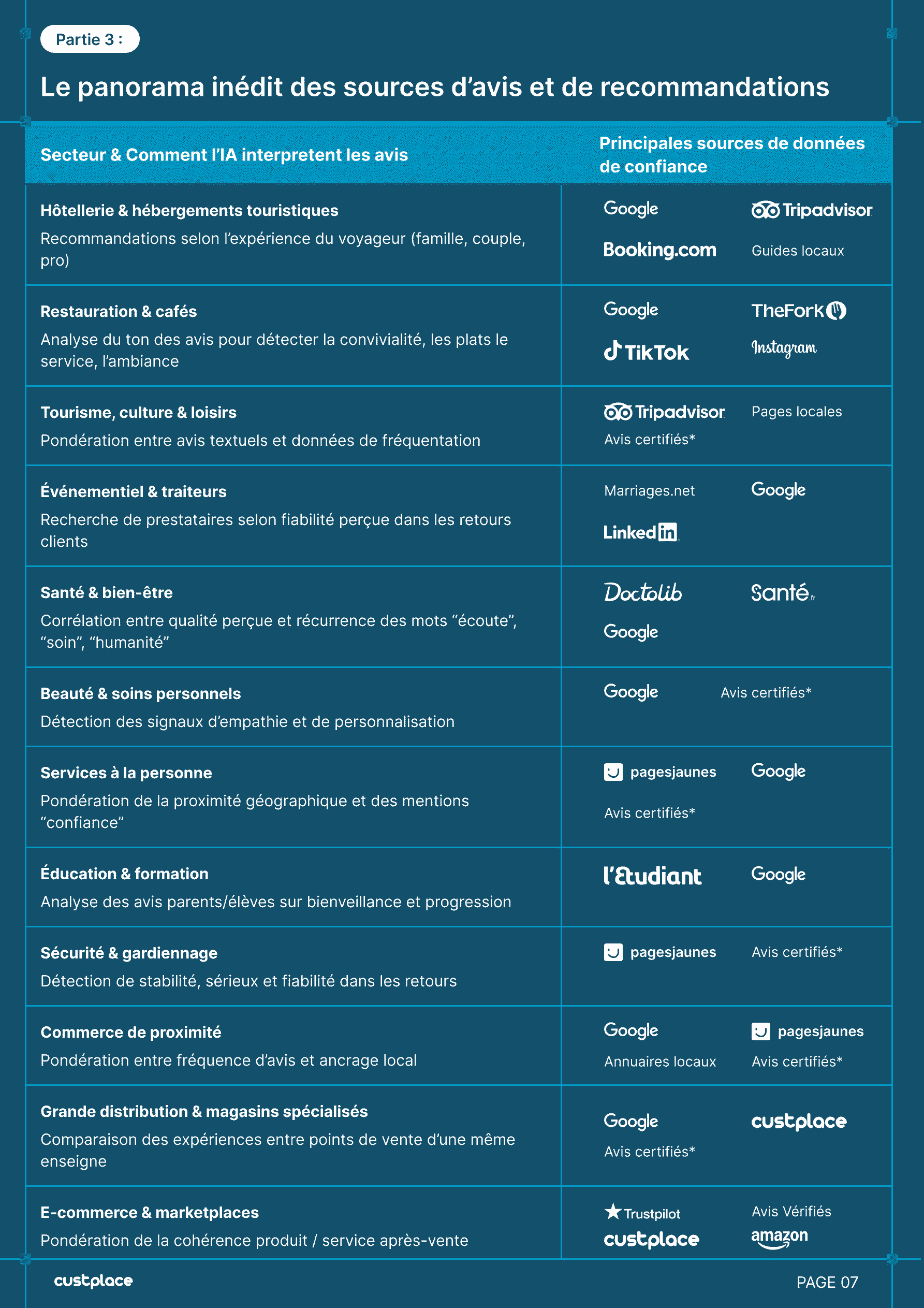 - Panorama inédit : les sources de recommandations par secteur : Retail, e‑commerce, services… Voyez comment chaque secteur peut tirer parti des avis et des recommandations automatisées.