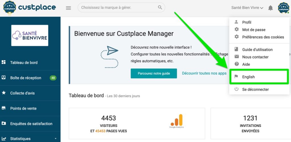 - Cliquer sur « Statistiques » puis « Avis clients ».