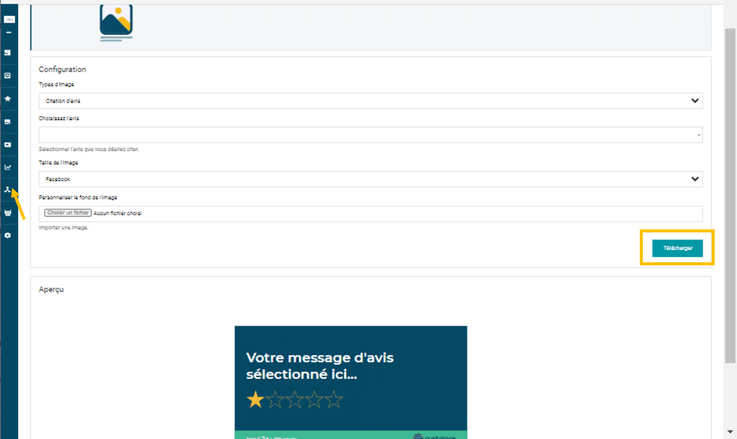Nous proposons une nouvelle option appelée « social share » qui vous permet de générer des photos selon la plateforme destinée, pour avoir la taille adéquate pour le réseau, dont nous pouvons noter, Facebook, Instagram, Twitter et Linkedin. Vous choisissez ce que vous souhaitez afficher si c’est la note ou un avis que vous sélectionnez.