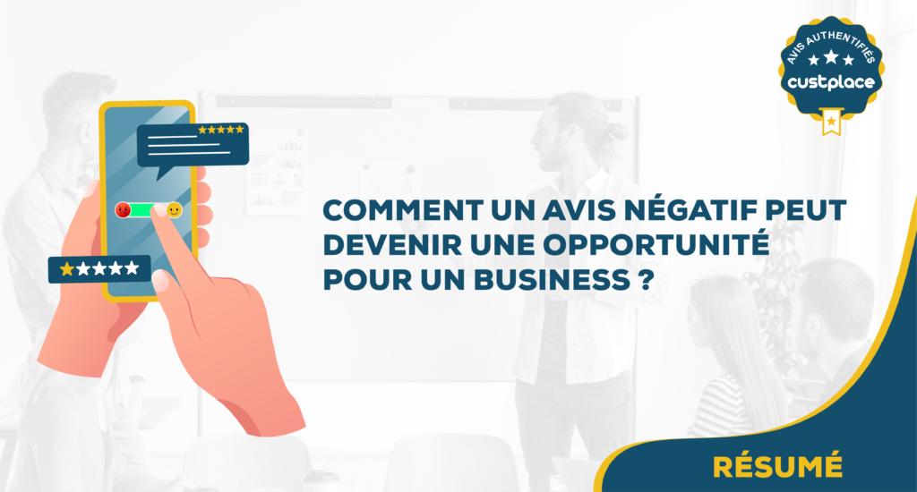 Vous n’avez pas pu participer à ce webinaire ? Nous vous offrons le replay en vidéo ainsi qu’un résumé écrit complet de notre webinaire pour que vous puissiez transformer vos avis négatifs en opportunités.